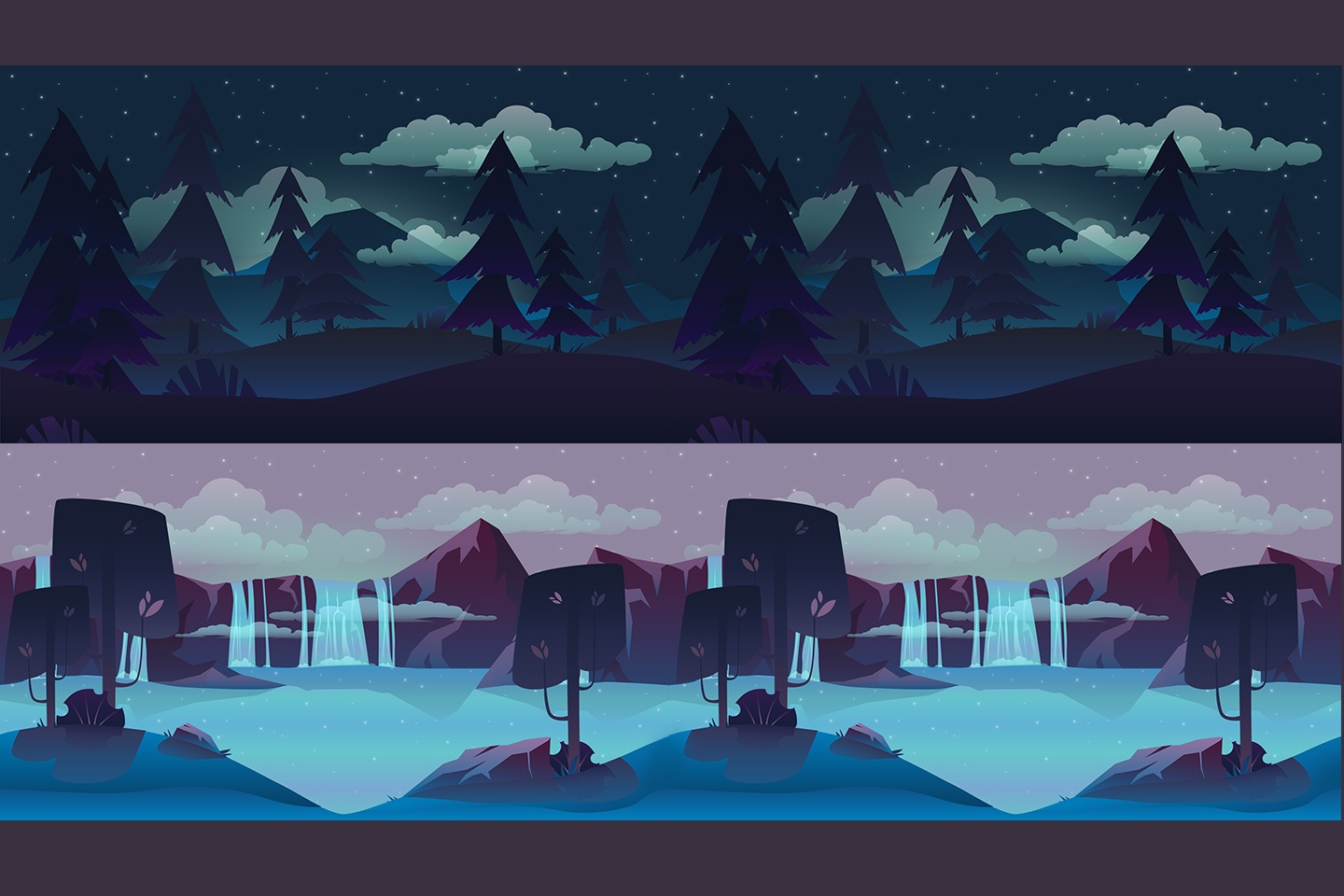 Here is a set of high-quality Free Horizontal 2D Game Backgrounds. This graphics is perfect for the genre of runner, platformer, and other similar arcade games. All backgrounds have a seamless structure. This will allow you to set up a permanent scrolling in your video game. We also made it possible to create a stunning Parallax effect. Specially for you, the layers have been saved into individual PNG files. We added EPS. In the archive you will find the original AI format. You can work with it in Adobe Illustrator. Since this is a 100% vector, you can easily make changes or choose the right resolution without loss of quality. All this you can download for free and use in your commercial game projects. Thank you for choosing graphics from Craftpix!