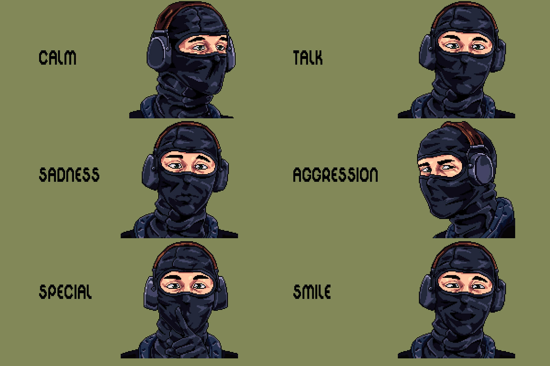 Introducing Free SWAT Dialog Portraits for Pixel Games, a powerful and atmospheric portrait pack designed to bring realism, tension, and personality to your in-game dialogue. This collection works perfectly for developers creating tactical shooters, story-driven action games, stealth missions, visual novels, or pixel art RPGs set in the modern or near future. If your game relies on strong characters, clear emotions, and gripping dialogue, this pack helps elevate every line. Inside, you will find three pixelated yet incredibly cool SWAT operators, each meticulously rendered in a dialogue-friendly design. Every operator is equipped with recognizable tactical gear including helmets, balaclavas, goggles, headsets, and protective armor, instantly emphasizing their role as elite law enforcement officers. What truly sets this pack apart is its wide range of expressive emotional states, allowing your characters to feel alive during conversations and cutscenes.