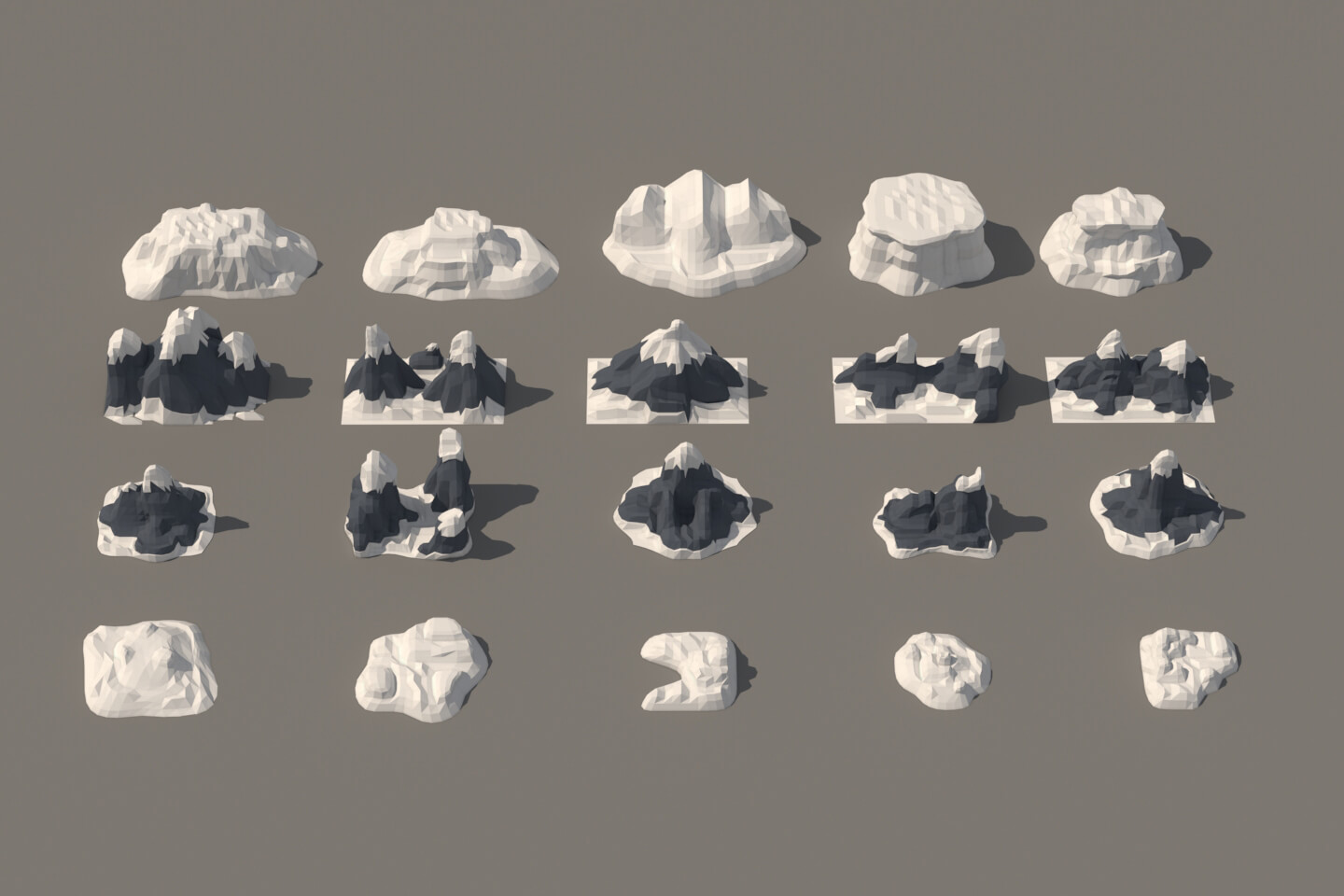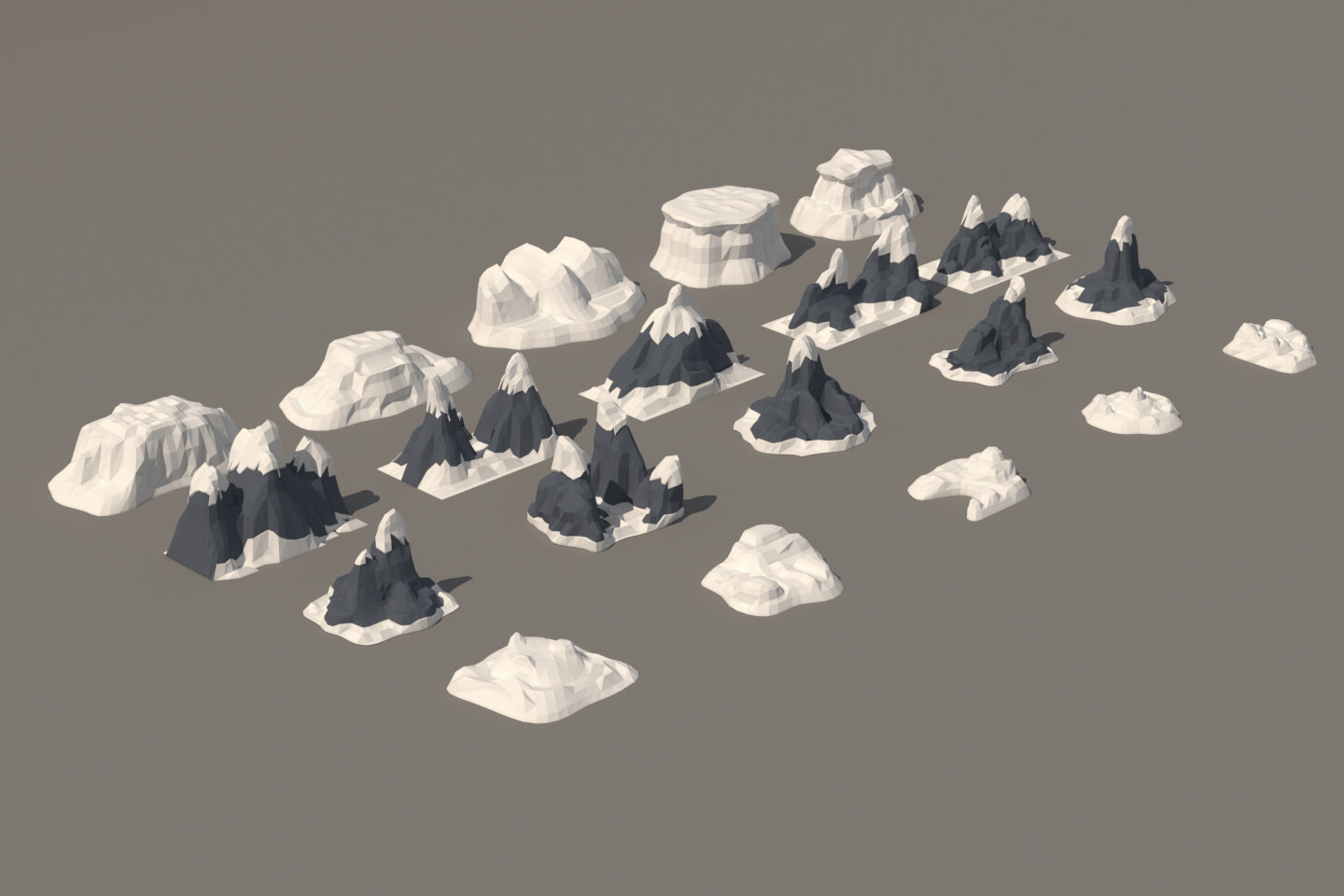 We present you Free Winter Mountain 3D Low Poly Models. This is a thematic collection of hills. If you like Low Poly style, then this set may be useful to you. These objects will allow you to diversify the landscape on the winter scene, for example in the game. All models use one simple texture atlas, which you can easily modify to change color.