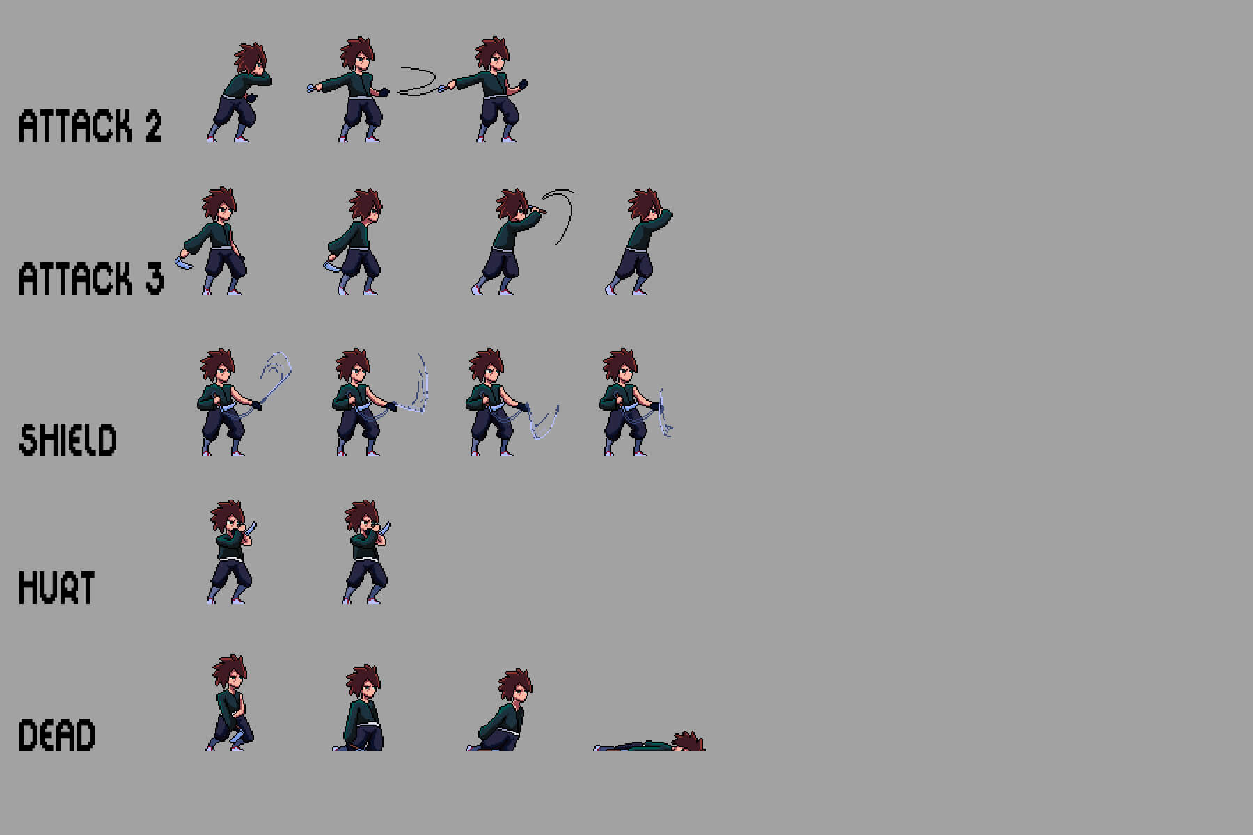 Free Shinobi Sprites Pixel Art is an excellent set. It is suitable for many game creators who are preparing to open their game project in such popular genres as action, RPG, adventure, strategy, quests, survival, battles, and others. Here you will find 3 great characters that are well built and have great options for later use. Among them, we can highlight: