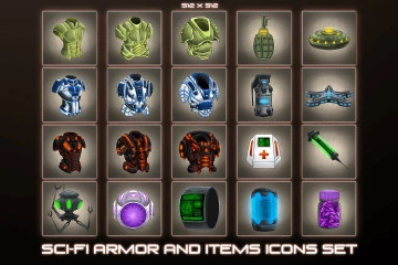 9 game assetsWe offer you a premium and free SCI-FI Game Icon Collection for your game. This collection is perfect for creators of 2D games