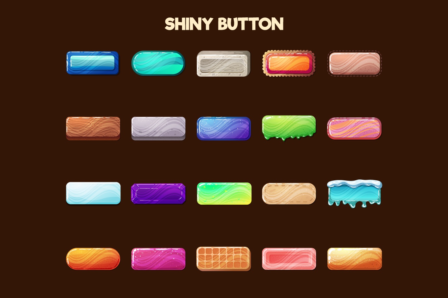 Free Buttons 2D Game Objects is a set of 20 different kinds of buttons. You can use them as part of the interface for your game. Only 3 formats: AI, EPS and PNG. All graphics in the archive is a vector. You can easily change the size or color without loss of quality. Just download the archive for free and start using it in your game project. CraftPix.net team will be glad to see this graphics in the finished game. We wish you success!