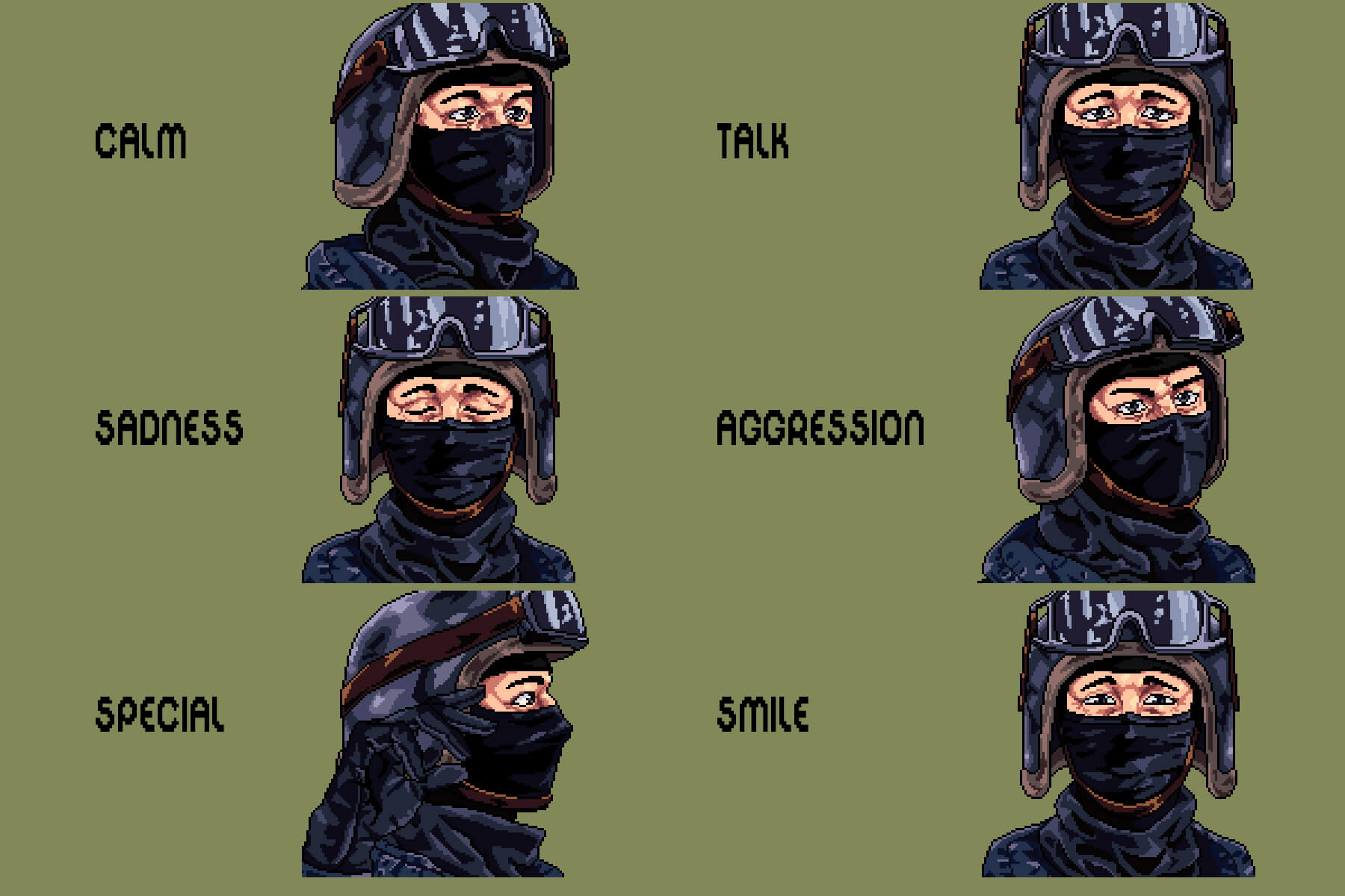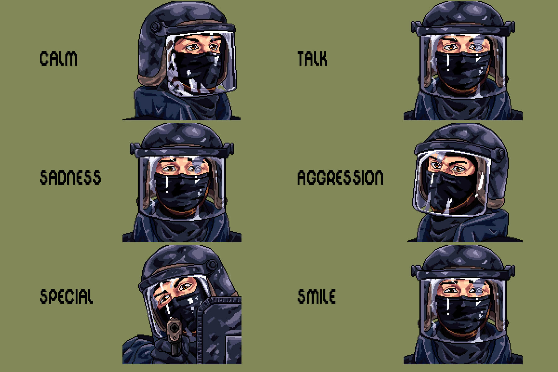 Introducing Free SWAT Dialog Portraits for Pixel Games, a powerful and atmospheric portrait pack designed to bring realism, tension, and personality to your in-game dialogue. This collection works perfectly for developers creating tactical shooters, story-driven action games, stealth missions, visual novels, or pixel art RPGs set in the modern or near future. If your game relies on strong characters, clear emotions, and gripping dialogue, this pack helps elevate every line. Inside, you will find three pixelated yet incredibly cool SWAT operators, each meticulously rendered in a dialogue-friendly design. Every operator is equipped with recognizable tactical gear including helmets, balaclavas, goggles, headsets, and protective armor, instantly emphasizing their role as elite law enforcement officers. What truly sets this pack apart is its wide range of expressive emotional states, allowing your characters to feel alive during conversations and cutscenes.